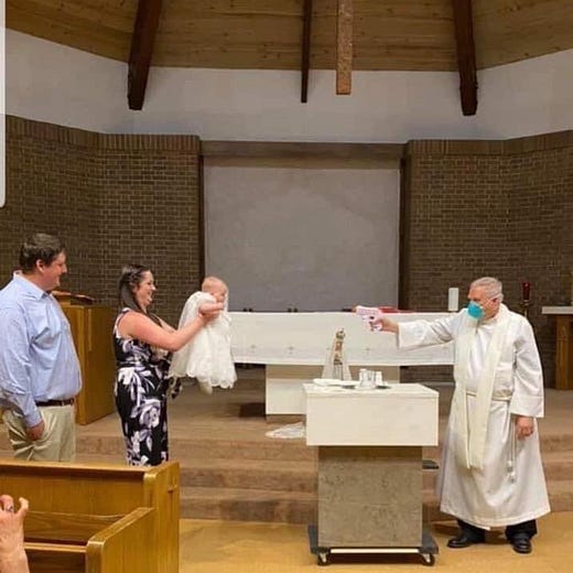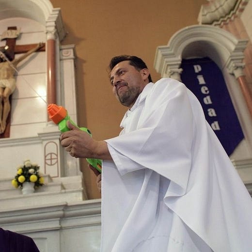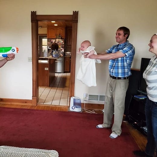 How do you baptize a baby in social distancing mode? With a Super Soaker, obviously.